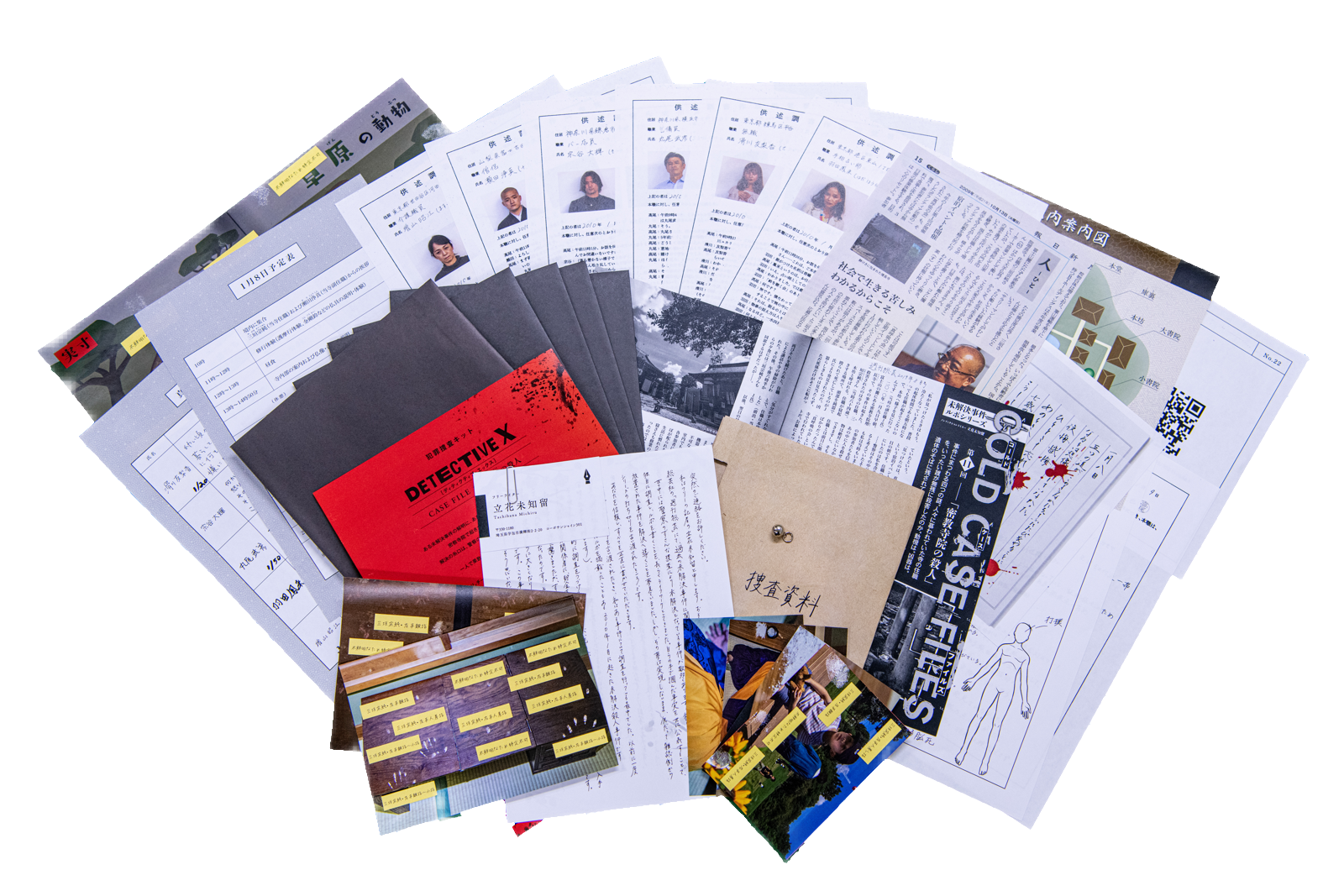 過去に起きた未解決の殺人事件に関する捜査依頼の手紙とともに同封されているのは、超リアルな警察資料やアイテムたち。